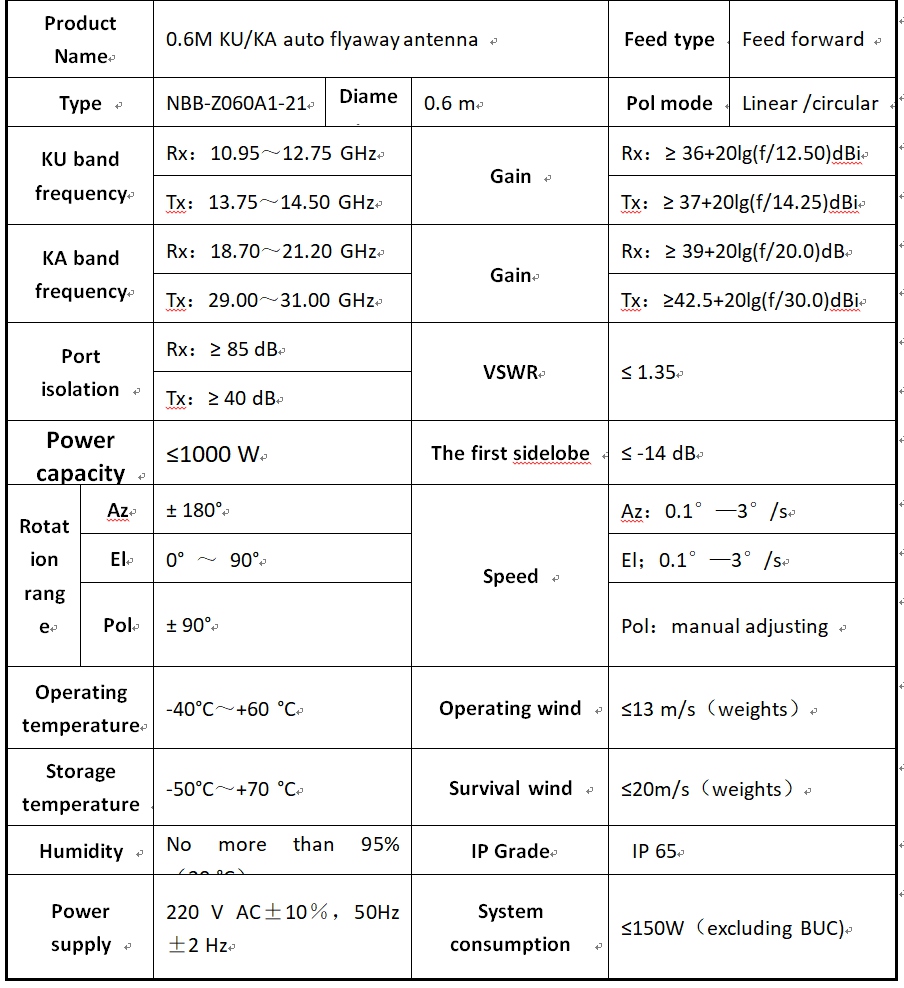 | 0.6m KU/KA auto flyaway antenna |